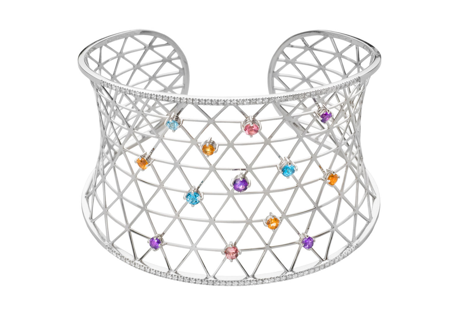 Кольца, серьги, подвески и браслеты этой серии сделаны из серебра с полудрагоценными камнями и цветными фианитами с лимитированным количеством 1964 для каждого варианта и модели.