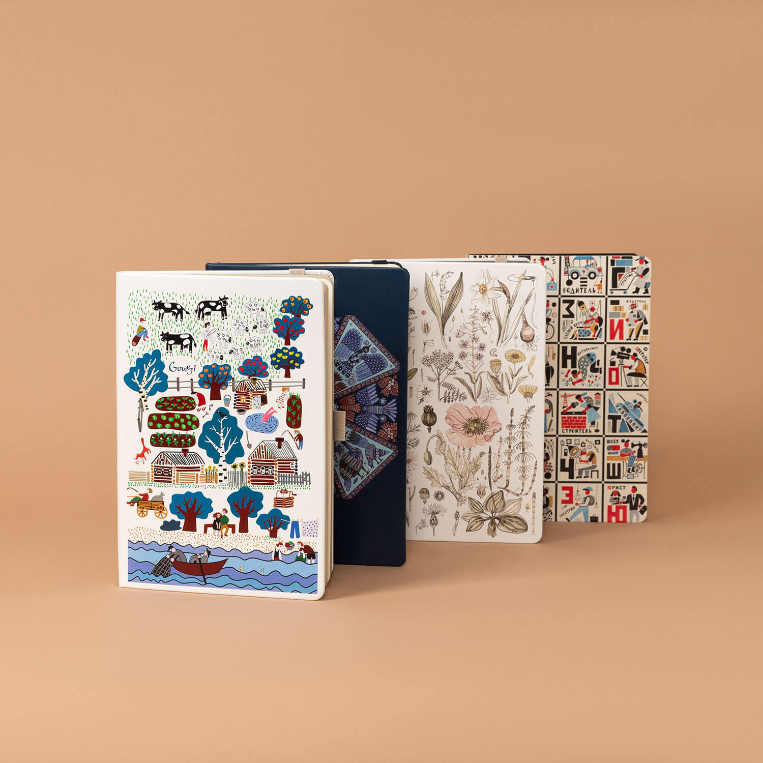 Художник Соня Уткина, с которой давно и плодотворно сотрудничает бренд Gourji, сохранила централизованную клиновидную композицию росписей церквей Кенозерья и их общую декоративную стилистику.
