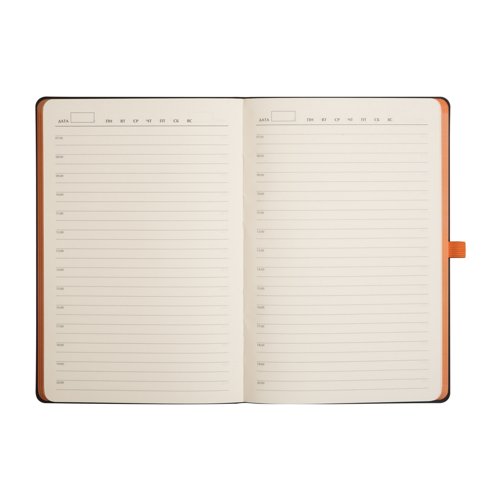 Ежедневник формата А5 разлинован, но не датирован, что позволяет начать его вести в любой момент.