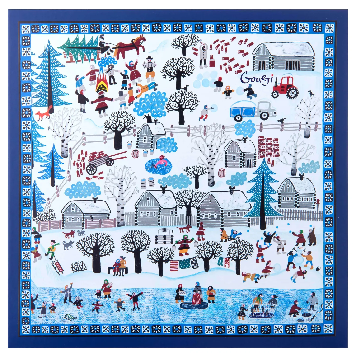 Рисунок Сони Уткиной «Зимняя деревня» знаком нашим покупателям по платкам и шалям.
