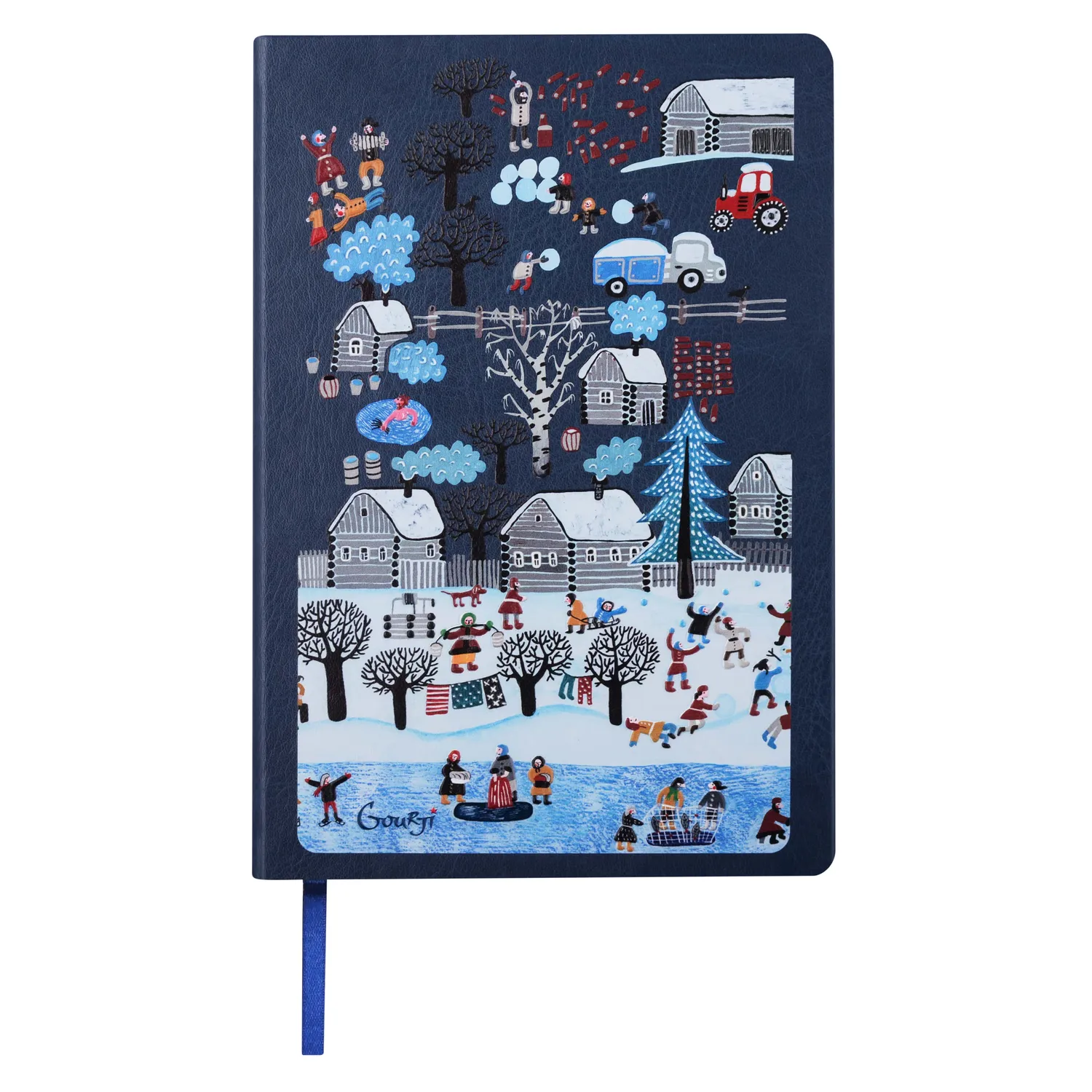 Обложка выполнена из качественной экокожи с рельефным изображением, отмечать нужный разворот поможет закладка в виде ленты с "медалькой" Gourji.