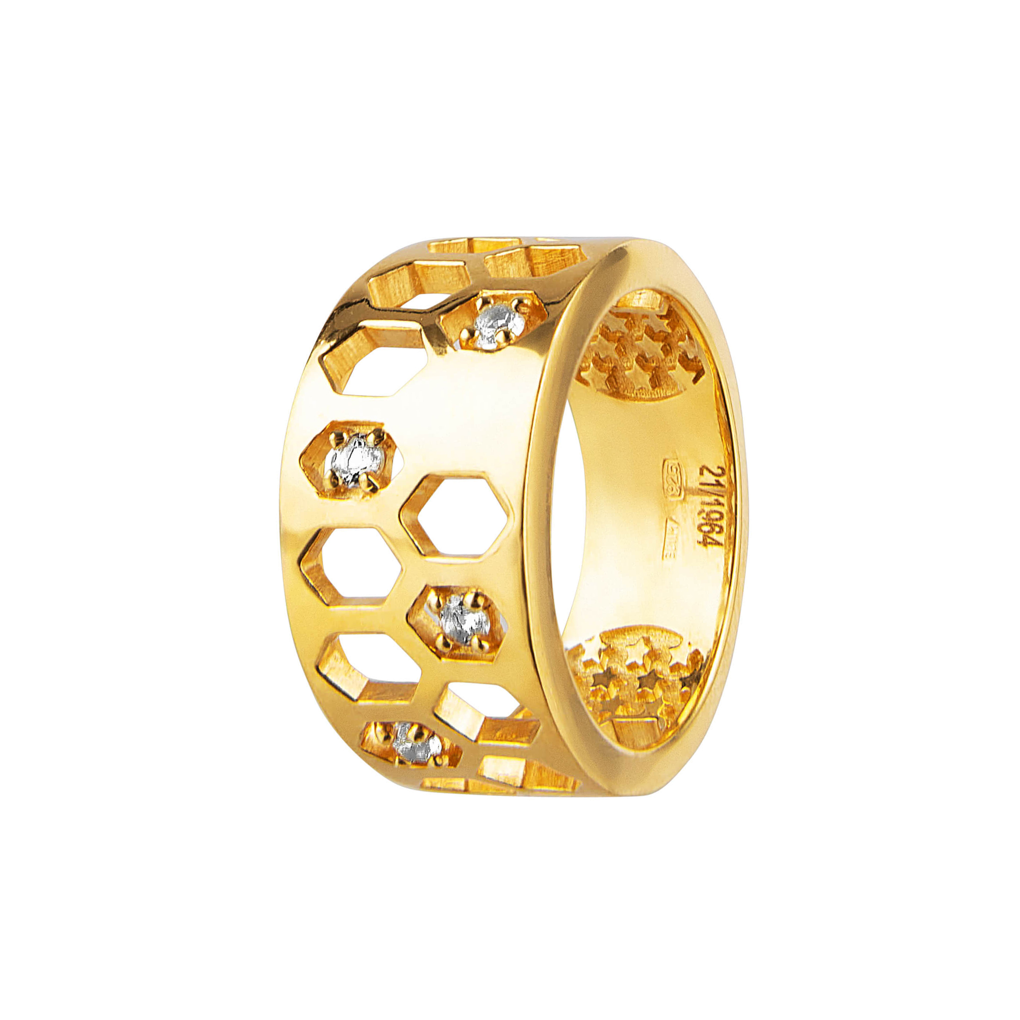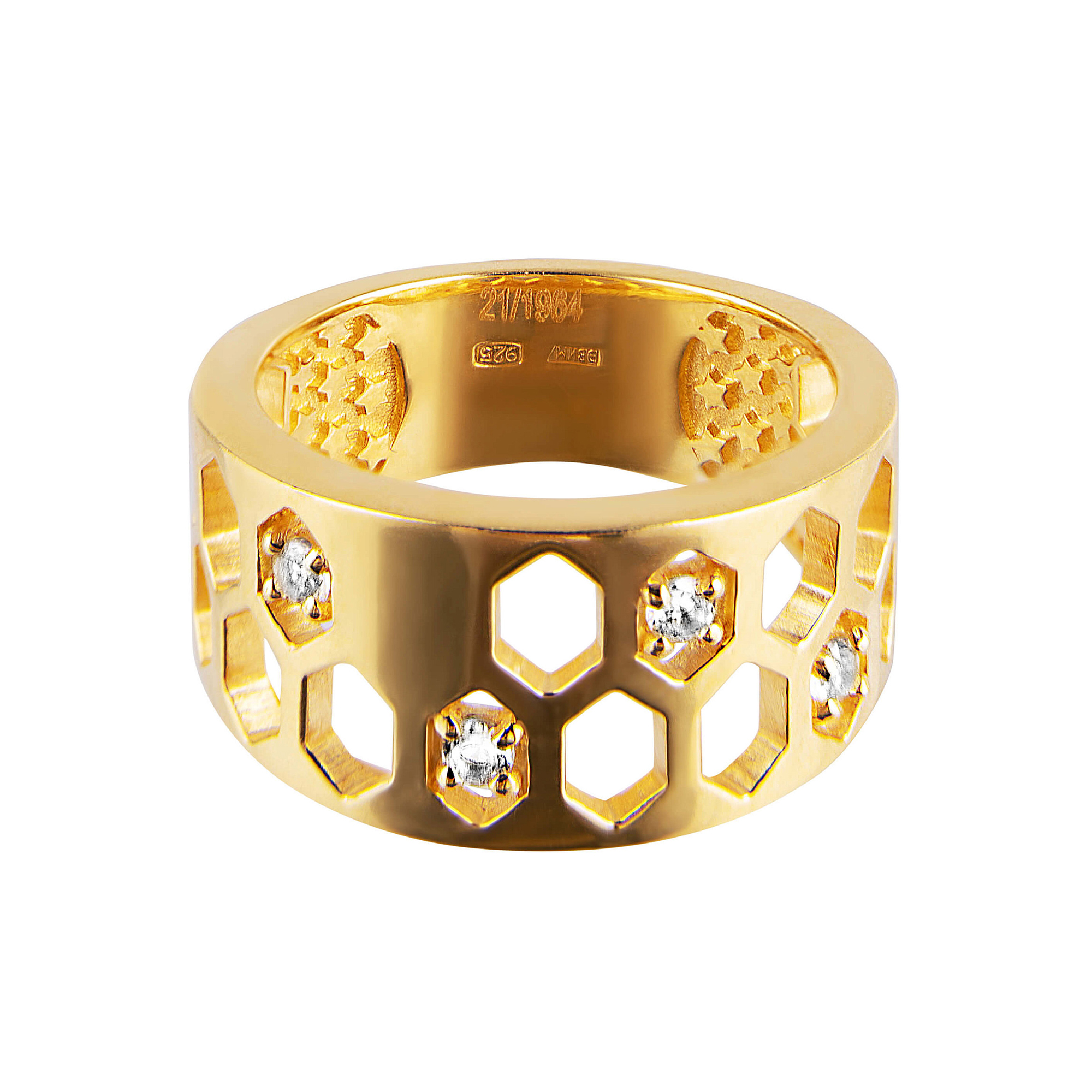 В дизайне серег и колец «Конструктивизм» использованы именно такие геометрические формы, цилиндры и ромбы, напоминающие пчелиные соты.