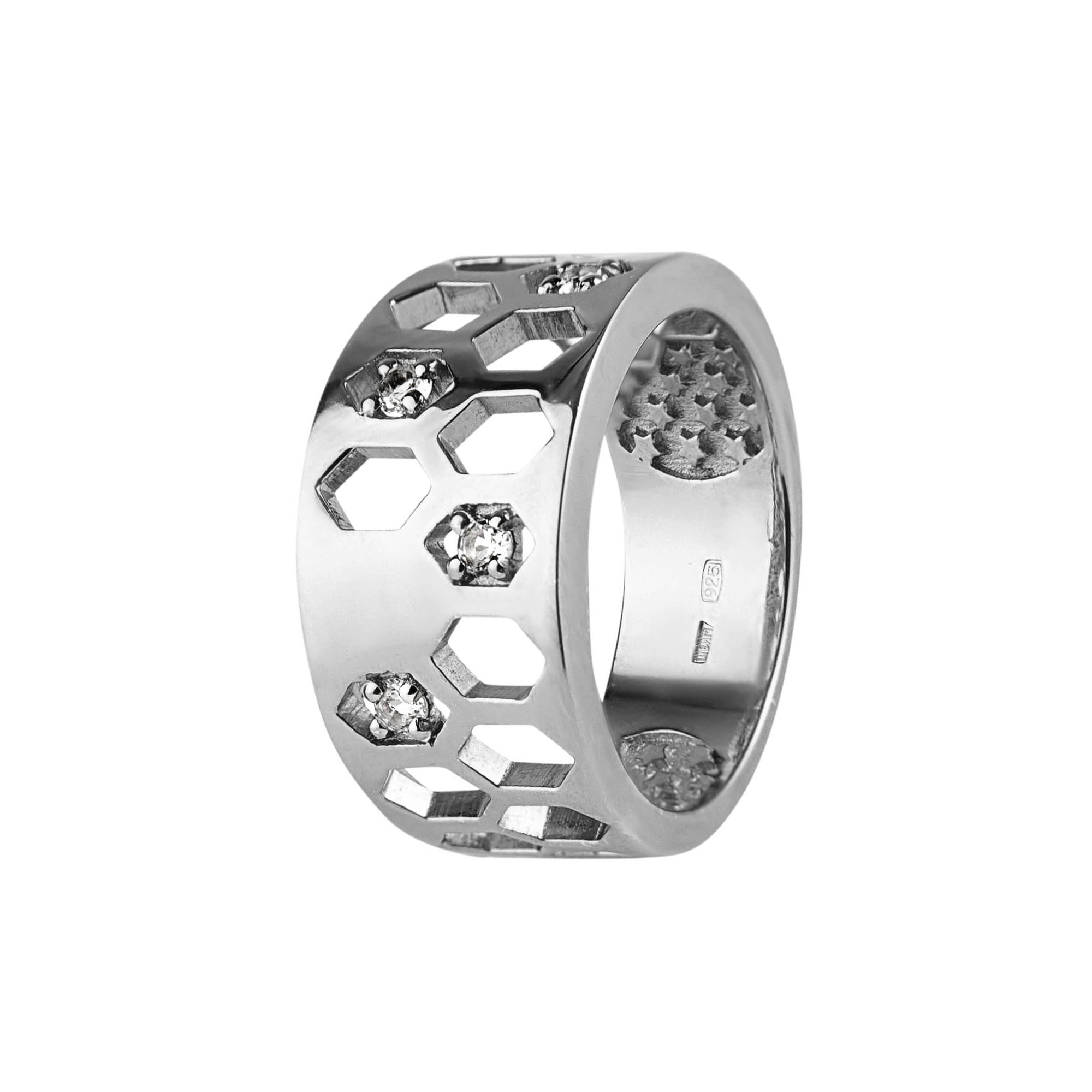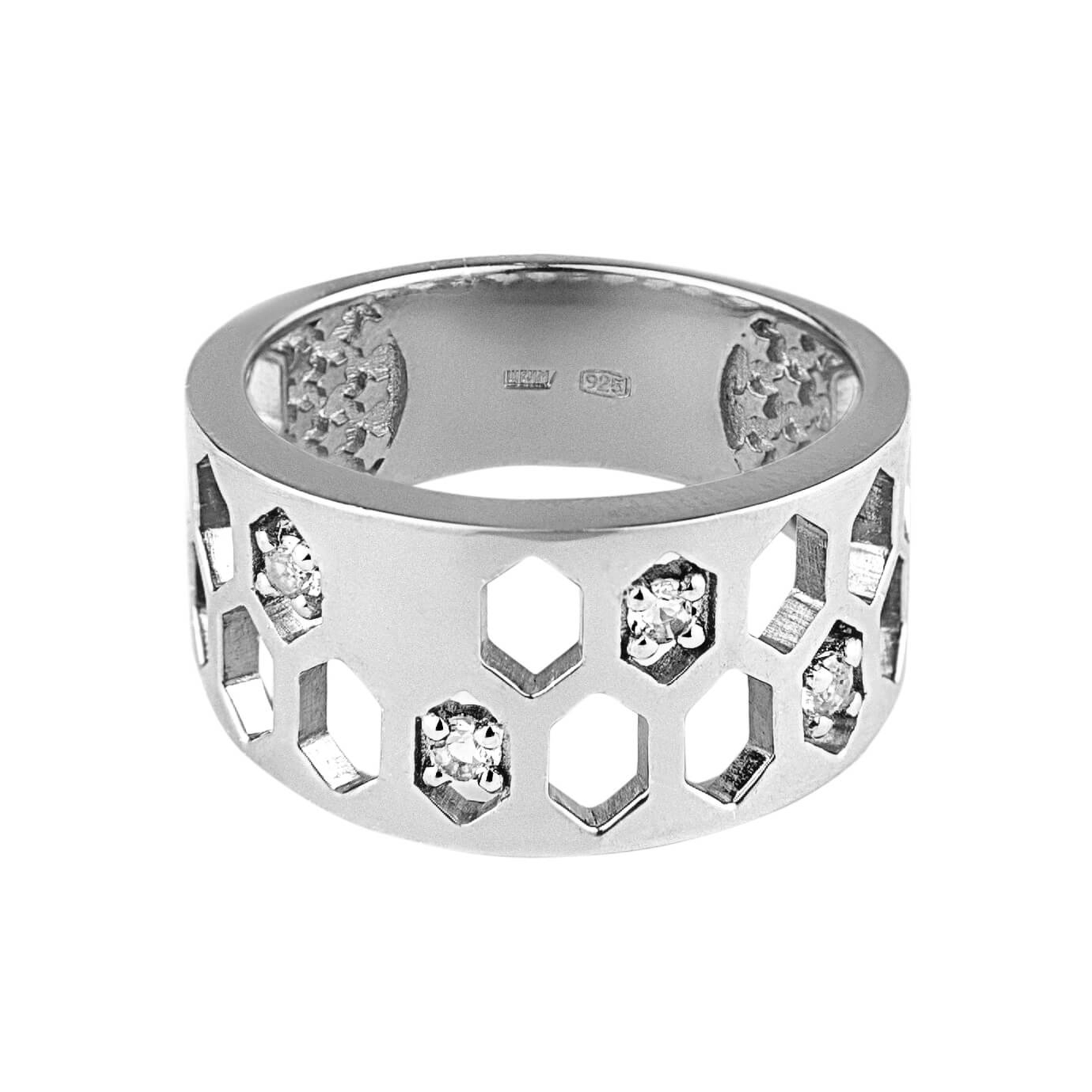 В дизайне серег и колец «Конструктивизм» использованы именно такие геометрические формы, цилиндры и ромбы, напоминающие пчелиные соты.