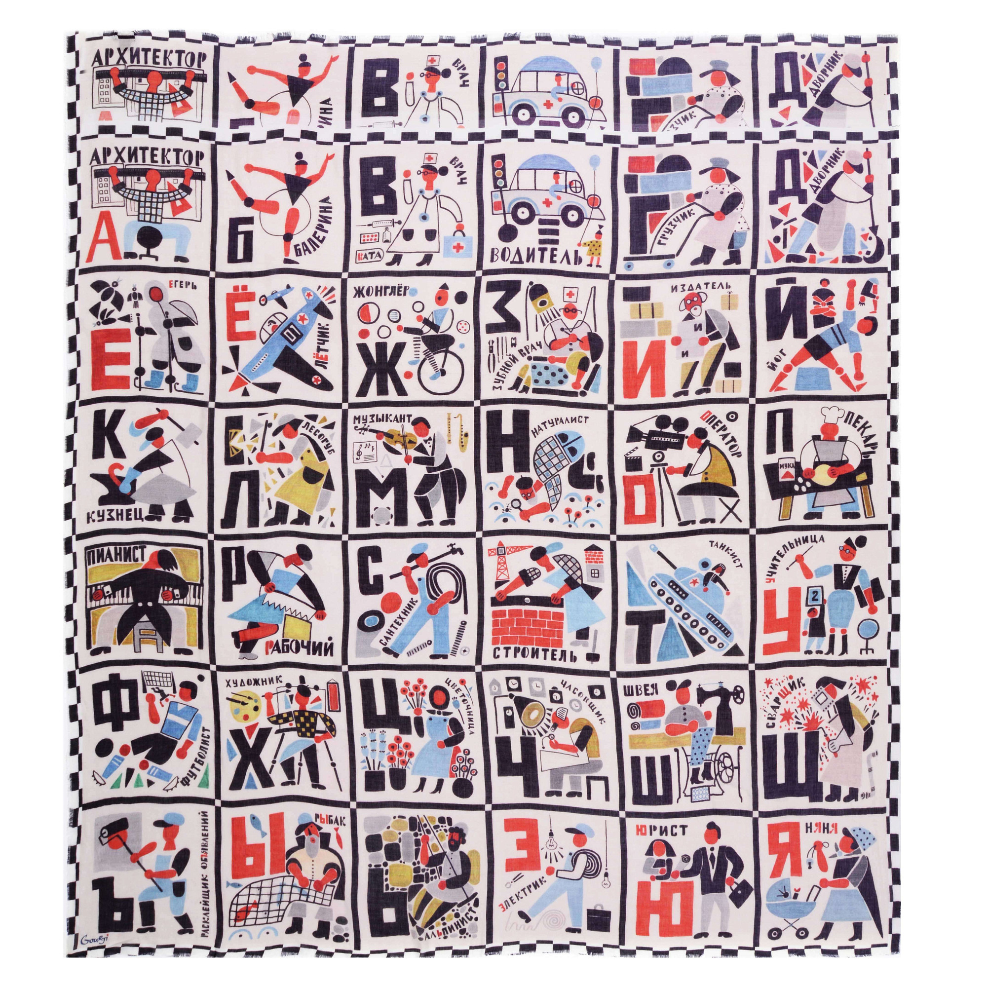 При создании нового платка «Алфавит. Авангард» его автор художник Софья Уткина черпала вдохновение в русском авангарде 1920-х гг.: в стилистике Конструктивизма и творчестве видного графика Владимира Лебедева, прославившегося агитационными плакатами в «Окнах РОСТА», Российского телеграфного агентства.
