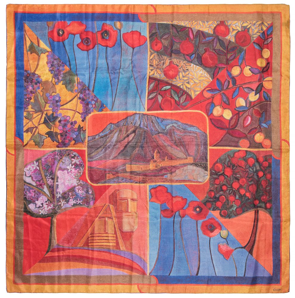 По цветовому решению платок перекликается с цветовой гаммой работ армянских художников, в частности, Сарьяна.