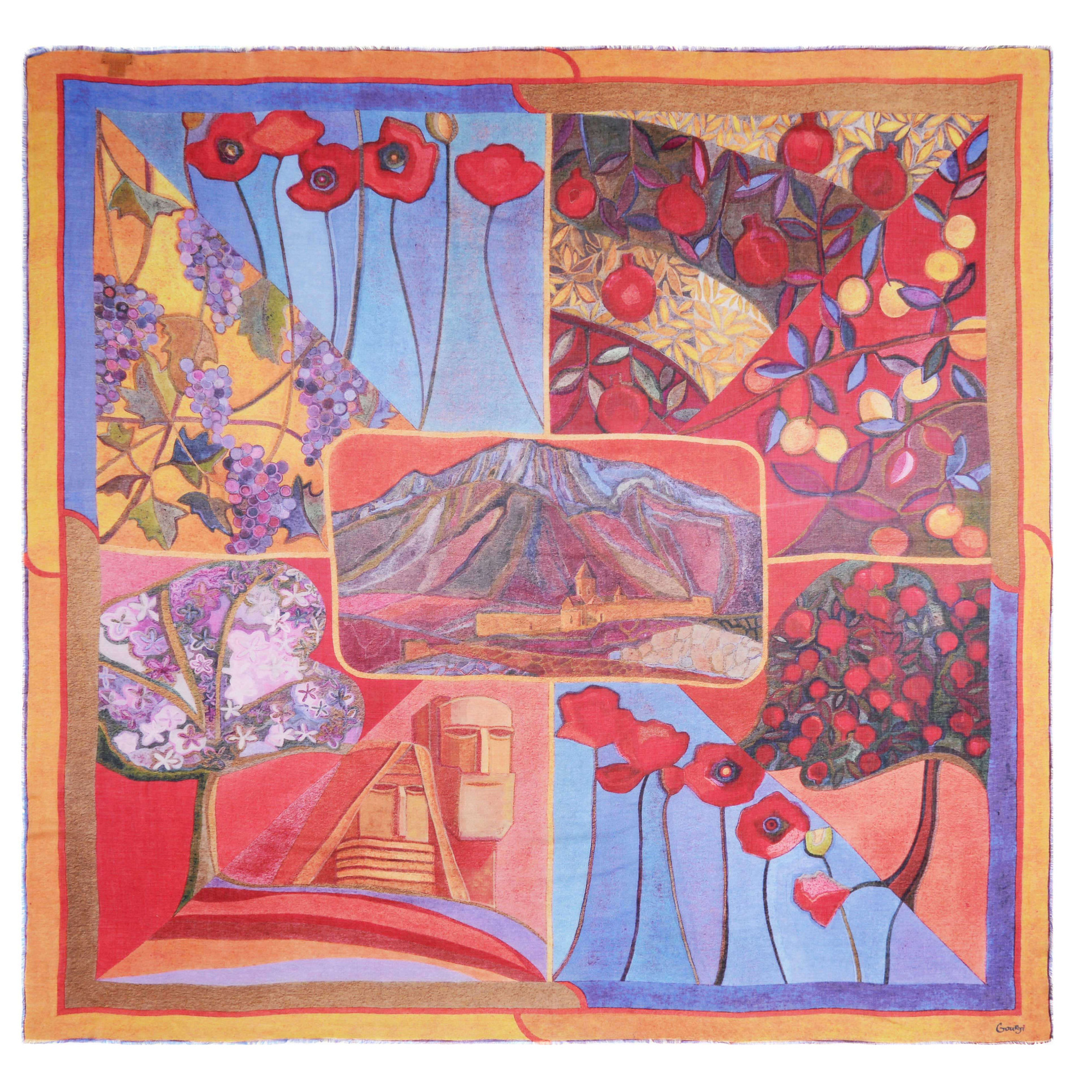 По цветовому решению платок перекликается с цветовой гаммой работ армянских художников, в частности, Сарьяна.