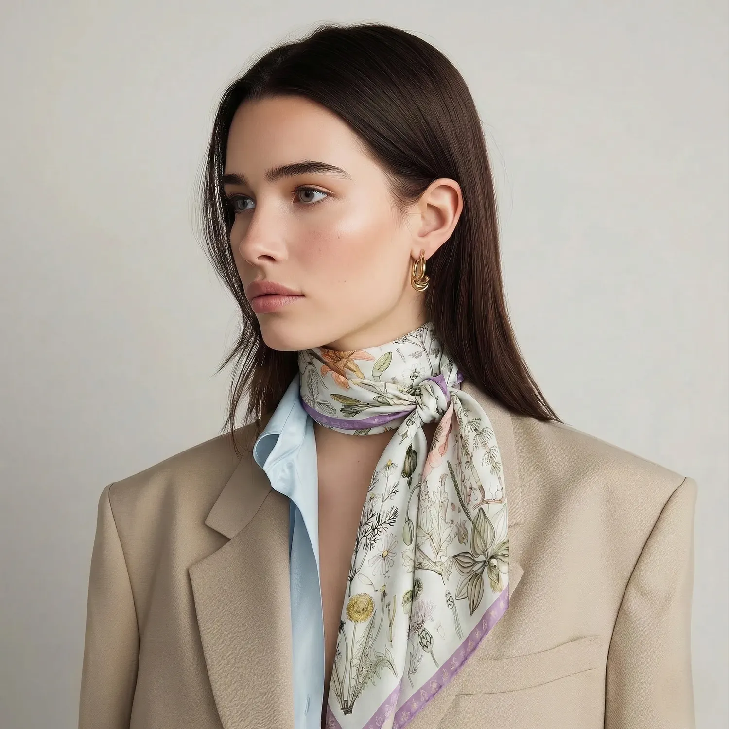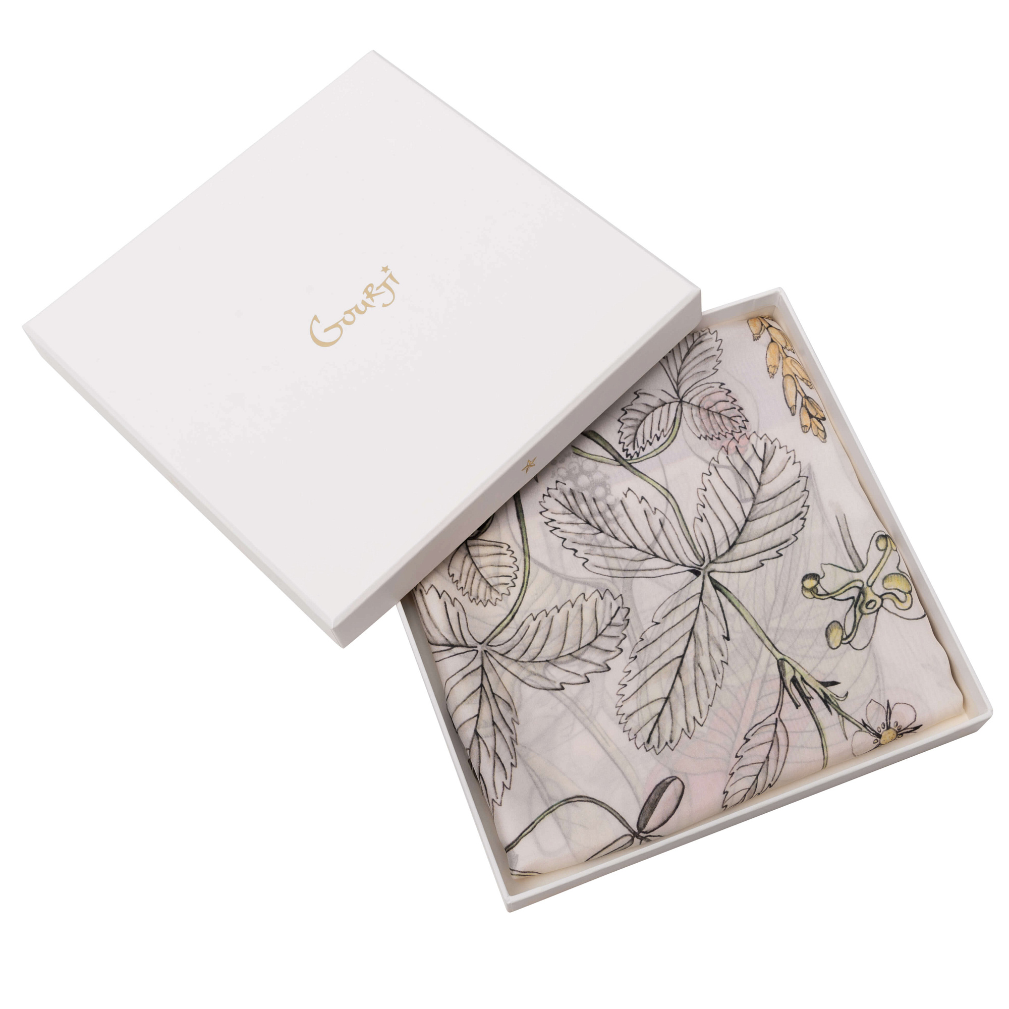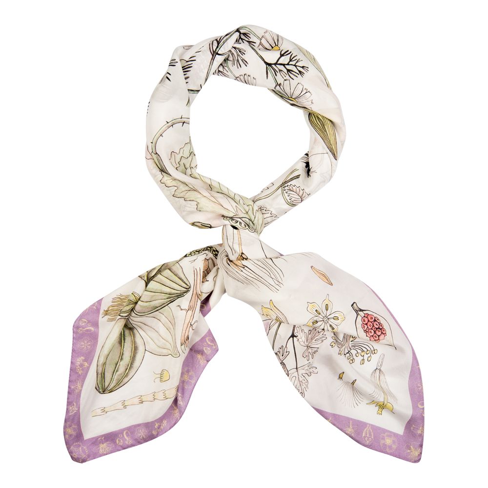 Основное пространство платка «Гербарий» напоминает, по задумке художника, страницу из учебника по ботанике, посвященную цветам и растениям средней полосы России.