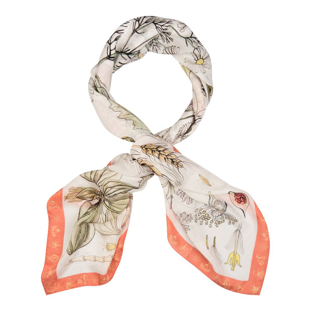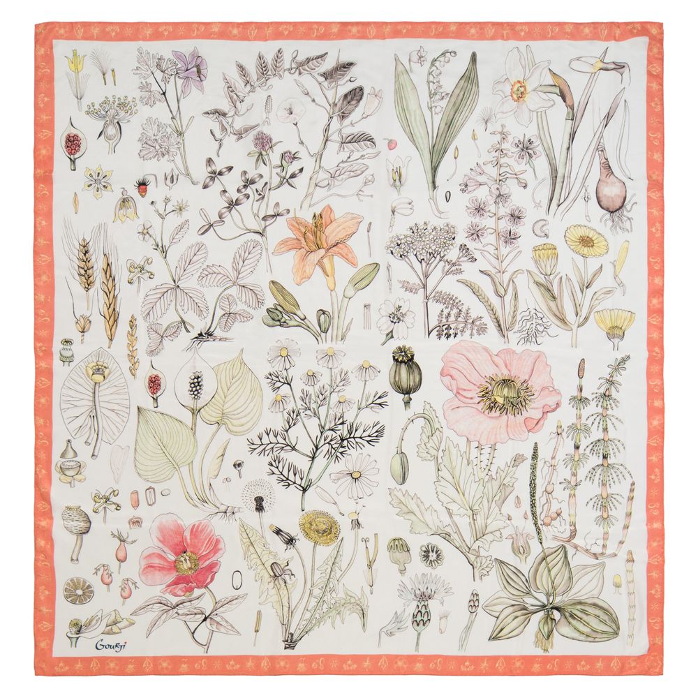 Основное пространство платка «Гербарий» напоминает, по задумке художника, страницу из учебника по ботанике, посвященную цветам и растениям средней полосы России.