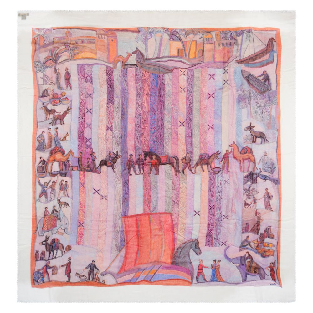 Знаменитое путешествие тверского купца Афанасия Никитина, которое он описал в путевых заметках под названием "Хождение за три моря" представлено в новом прочтении - одноименном каре в шелке и модале.