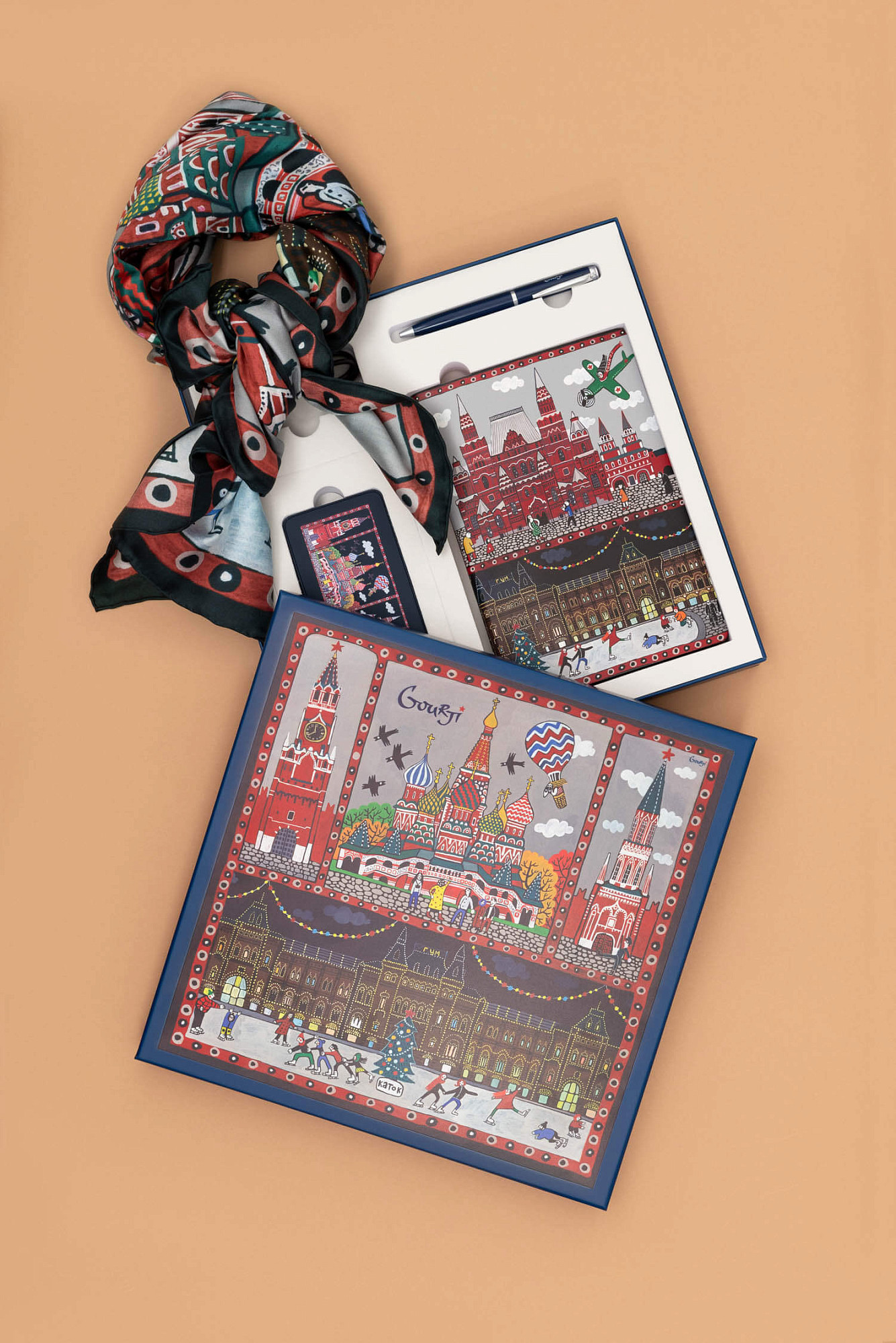 Известная практически всему миру Красная площадь выглядит на платке не совсем обычно.