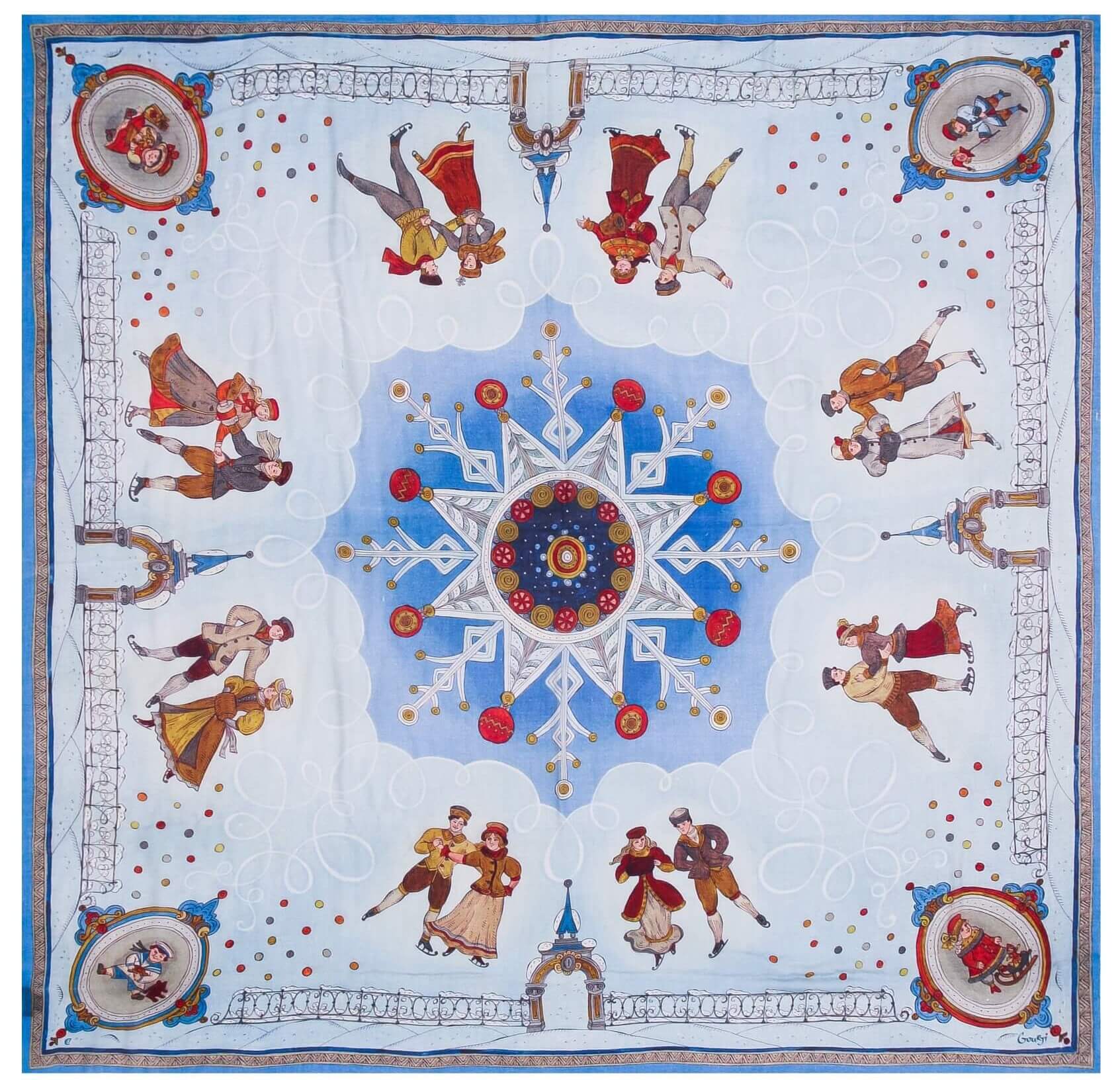 Новинка бренда Gourji, платок «На катке» – это новый совместный проект в рамках коллаборации с художником Ольгой Соколовой, живописцем, дизайнером и сценографом, членом Академии Народного Искусства, Творческого Союза Художников России и Международной Академии Творчества.