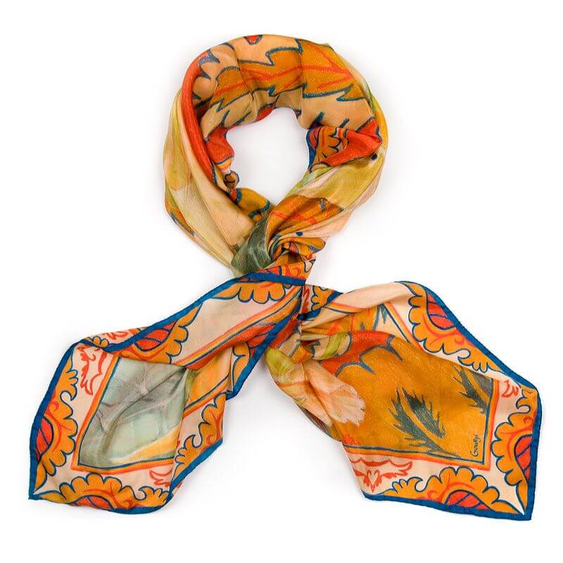Шаль и платок «Настурция» выглядят по-летнему благодаря яркой палитре, выбранной художником.