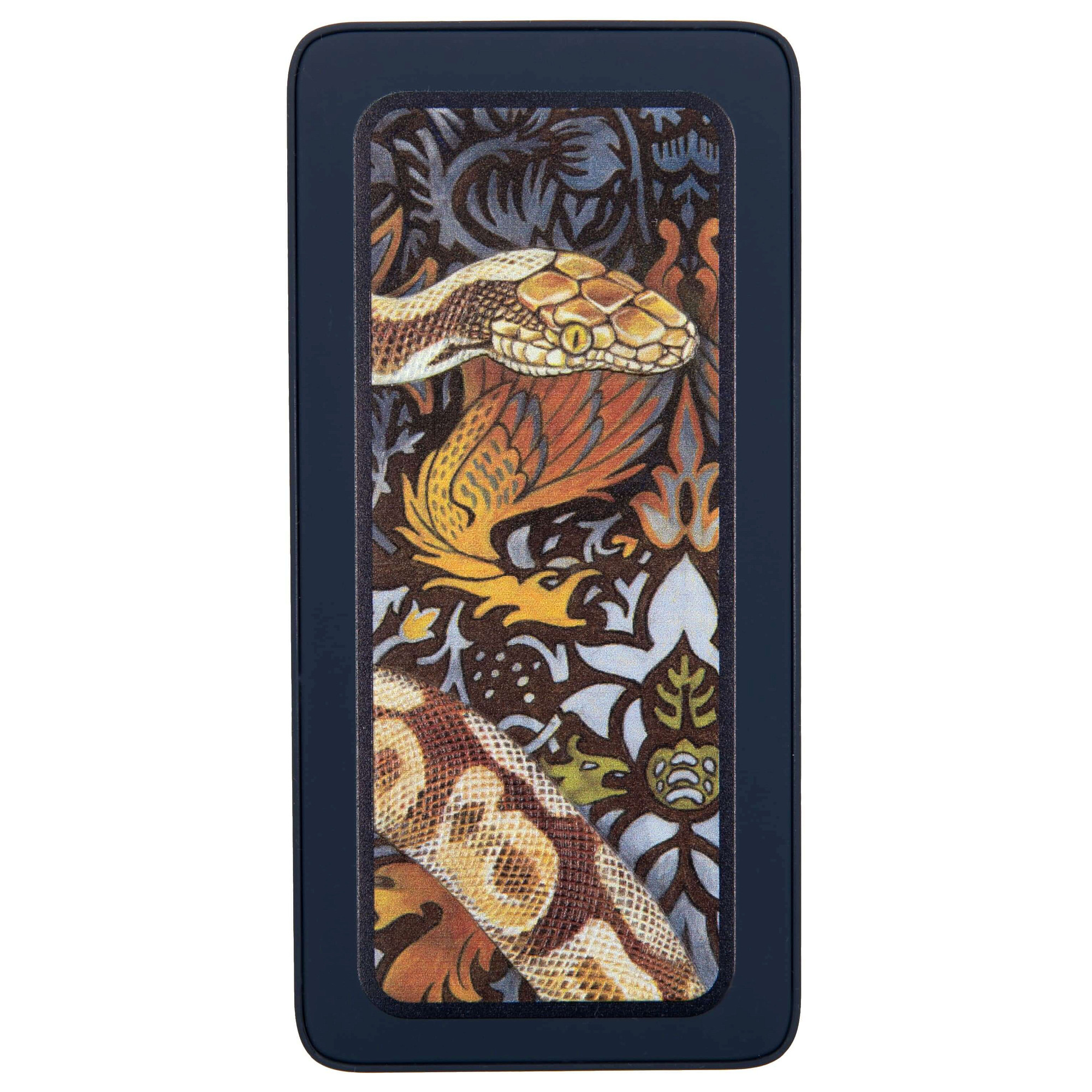 В эскизе «Змея» художница сочетала декоративные орнаментальные мотивы в стиле Arts & Crafts и реалистичное, почти натуралистичное изображение змеи – мощного, прекрасного естественной красотой питона с пятнистой кожей.