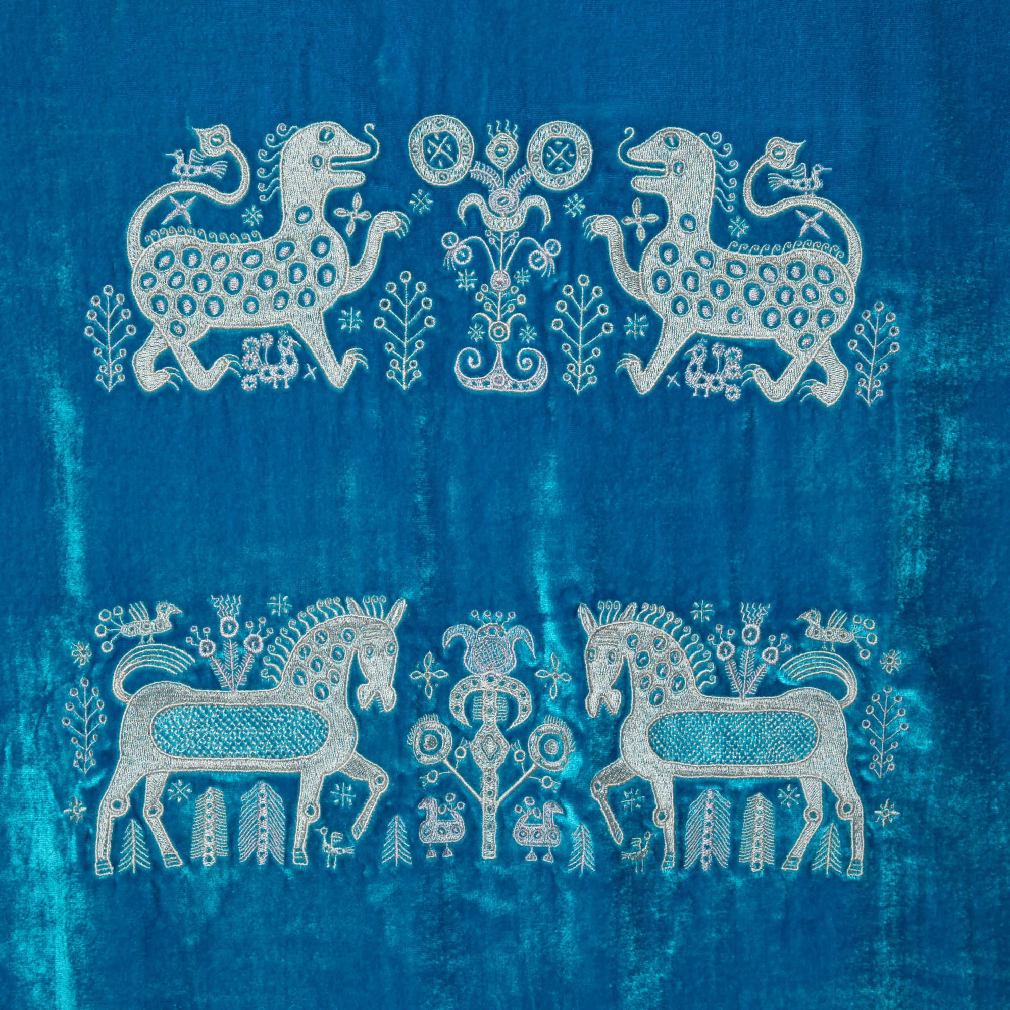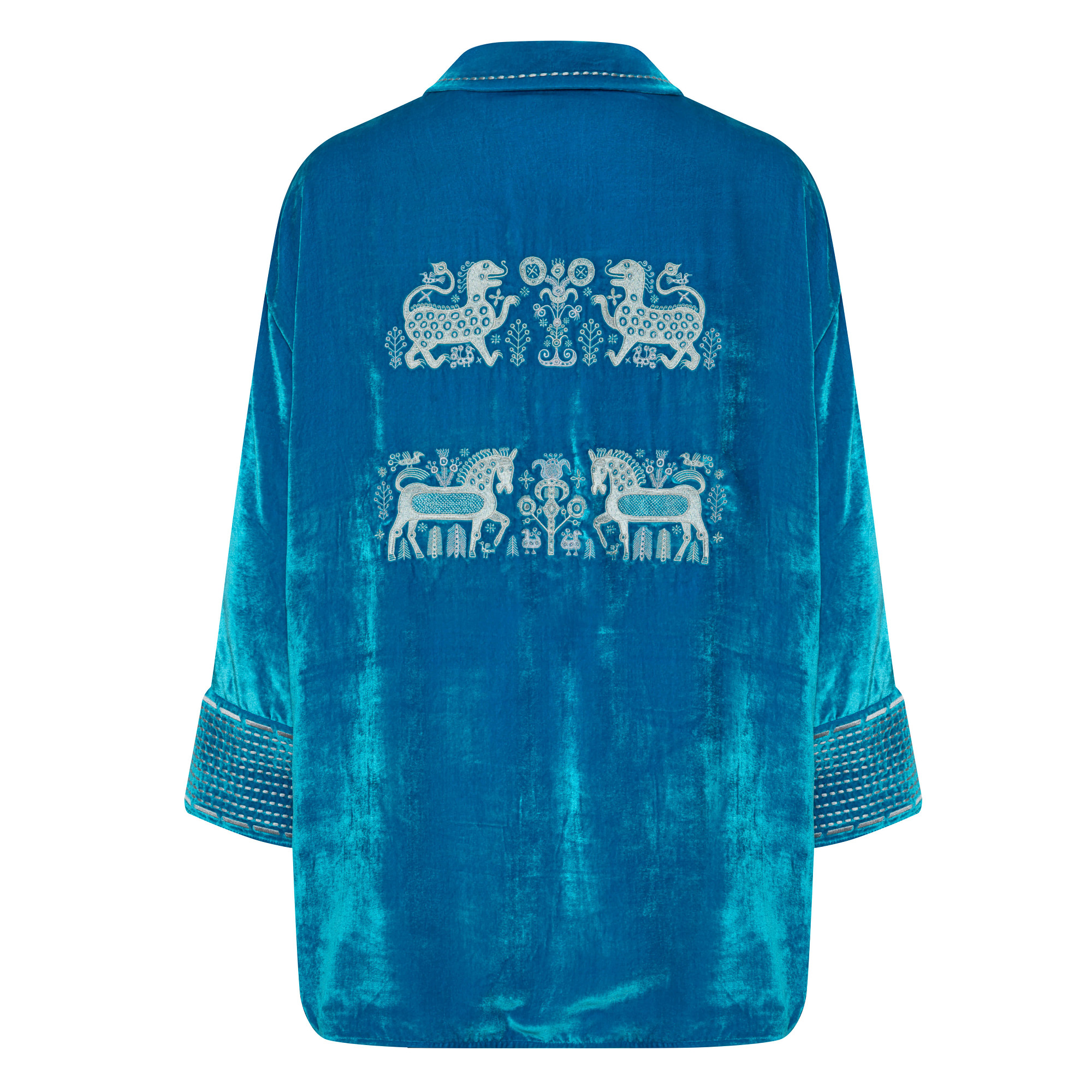 Спину рубашки украшает элегантная вышивка "Византийский бестиарий" с изображением животных.