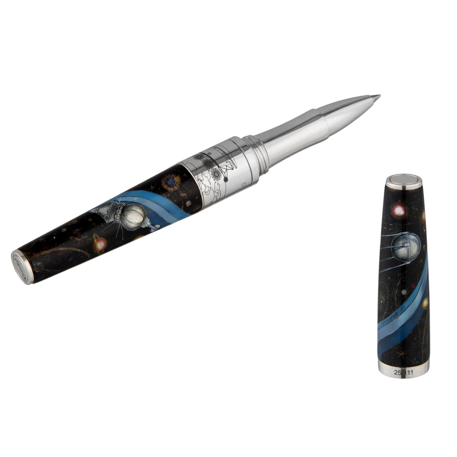 Ручка «Космос» посвящена достижениям нынешней России и прежнего СССР в освоении космического пространства и расписана вручную мастерами лаковой миниатюры Федоскинских мастерских.