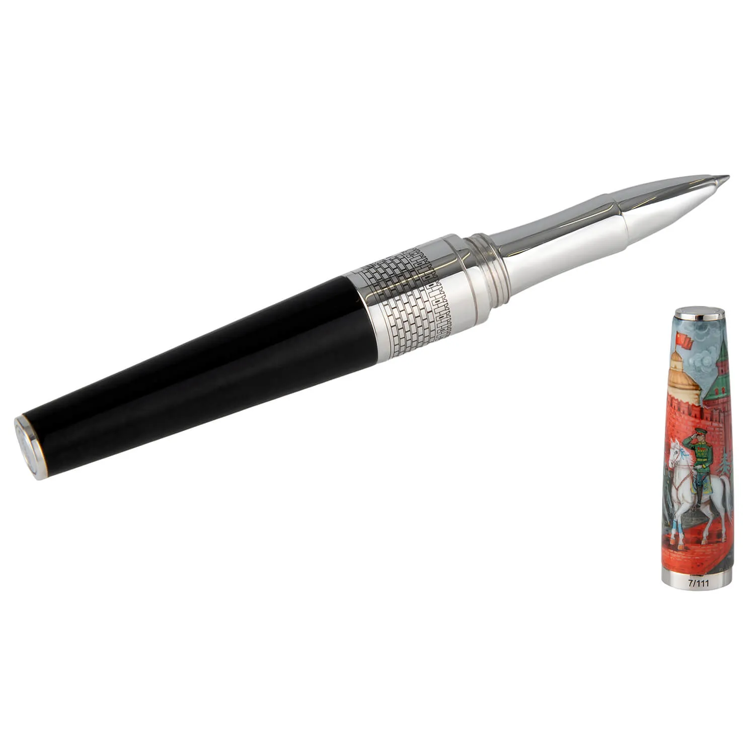 Ручка Gourji «Маршал Победы» расписана вручную мастерами Федоскино в традиционной технике лаковой миниатюры. Это произведение прикладного искусства, демонстрирующее уважение бренда к памяти победителей в Великой Отечественной войне и глубокую благодарность им. Лимитированный выпуск служит «мостом памяти» между победившими нацизм и их потомками, в том числе современными коллекционерами.