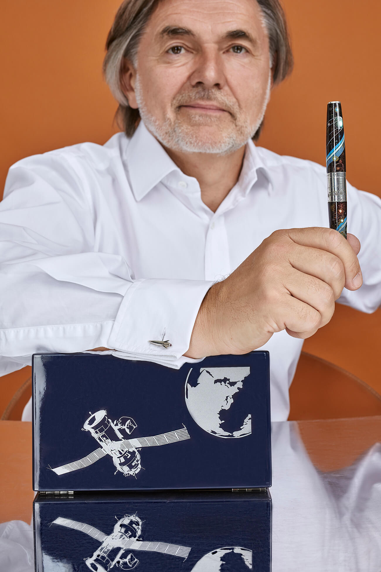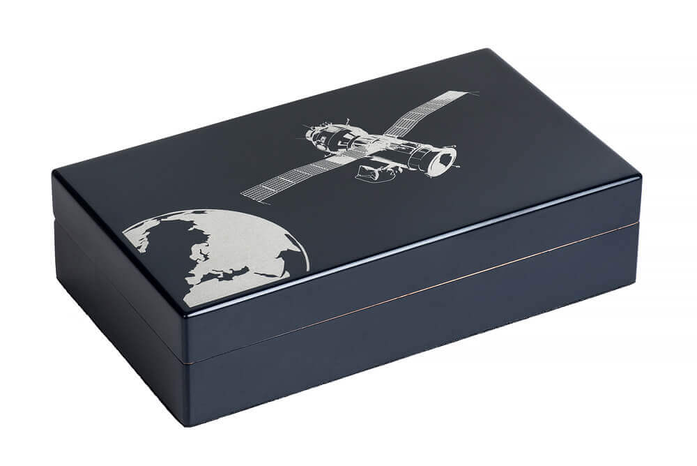 Ручка «Космос» посвящена достижениям нынешней России и прежнего СССР в освоении космического пространства и расписана вручную мастерами лаковой миниатюры Федоскинских мастерских.