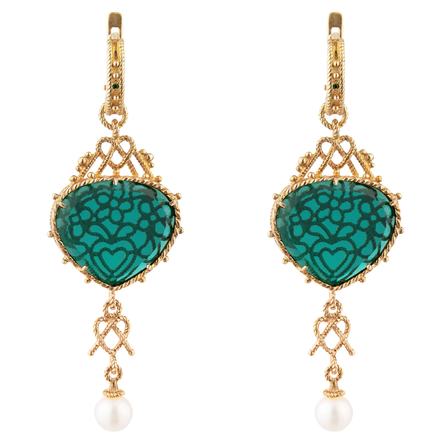 Оправы из золоченого серебра обрамляют цветные прозрачные камни-ситаллы и жемчуг, который с древних времен символизировал богатство и достаток в доме.
