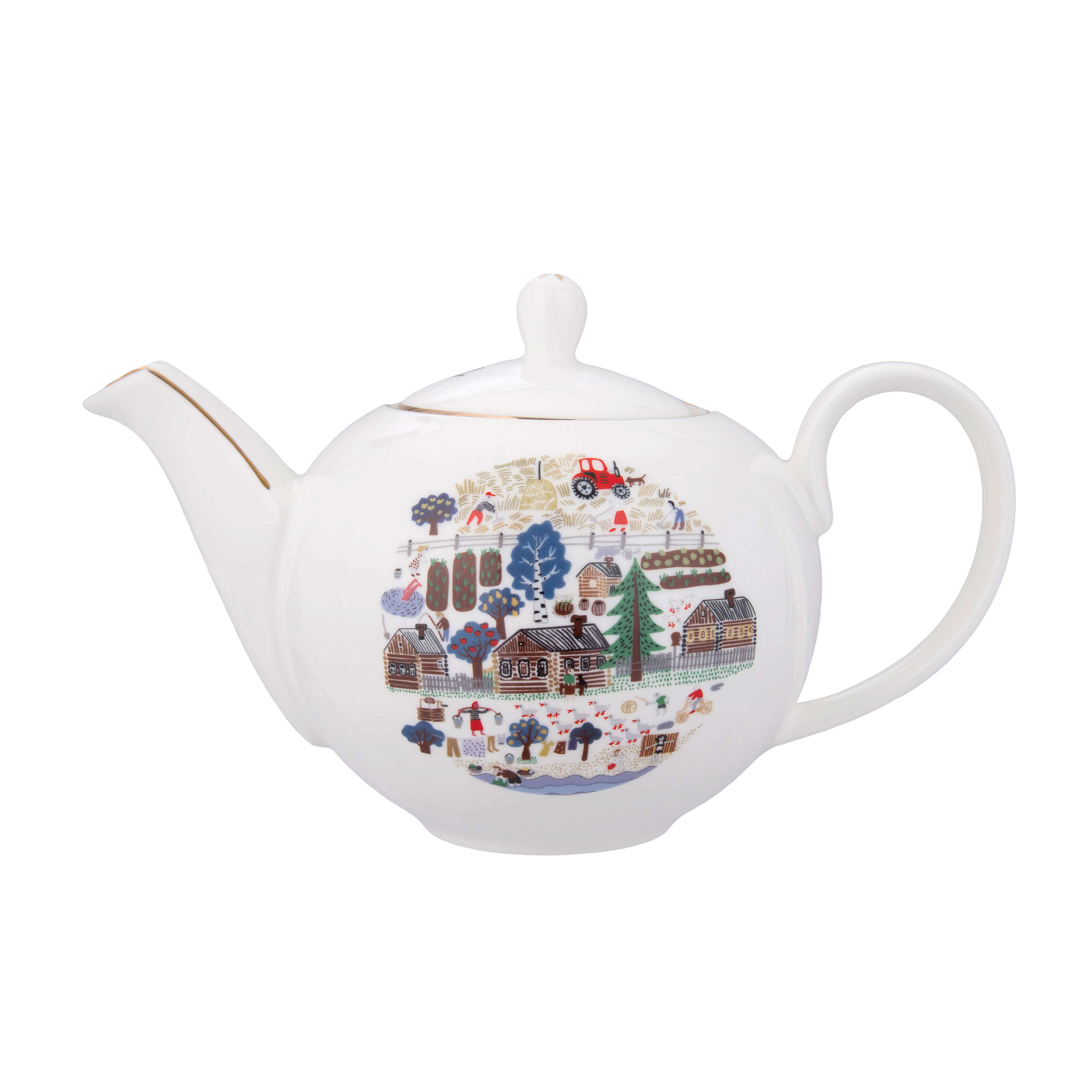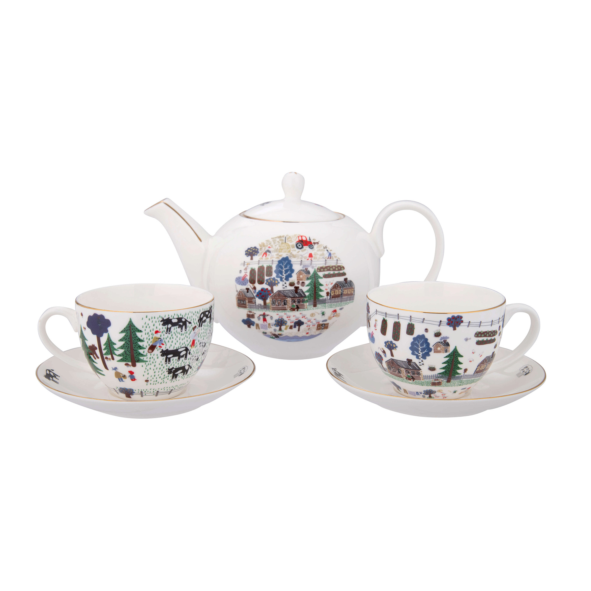 Новинка в коллекциях керамики Gourji – сервиз «Деревня». На классический заварочный чайник и две чайных пары перенесено изображение "Деревня" от дизайнера Сони Уткиной. Эскиз отличает обдуманное упрощение рисунка, делающее его формы наивно-примитивными, идеально отражает простоту и естественность деревенской жизни. Благодаря своеобразному сочетанию ярких природных цветов ощущается не только особая задушевность мировосприятия, но и тесная связь с поэтикой русского фольклора.
