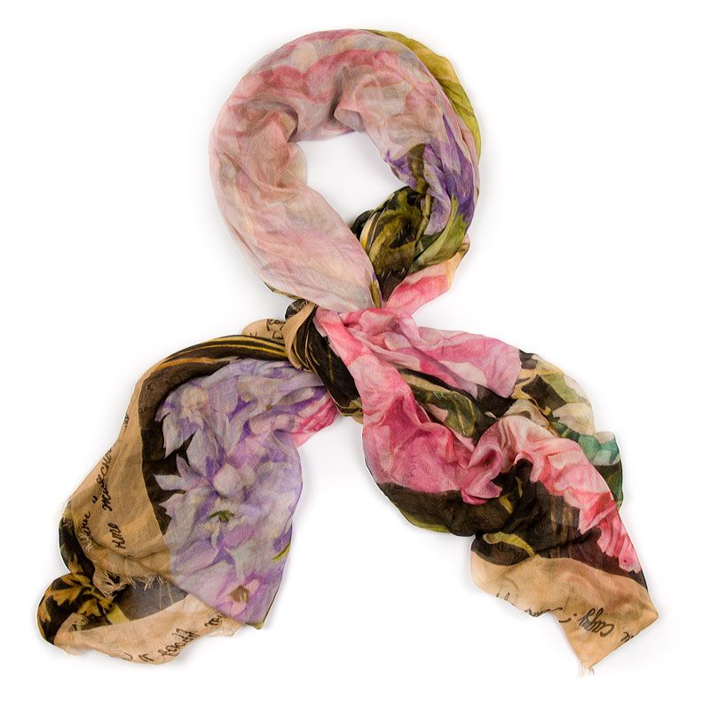 Нежный как по фактуре, так и по цвету весенне-летний шелковый платок больше всего напоминает классический натюрморт.