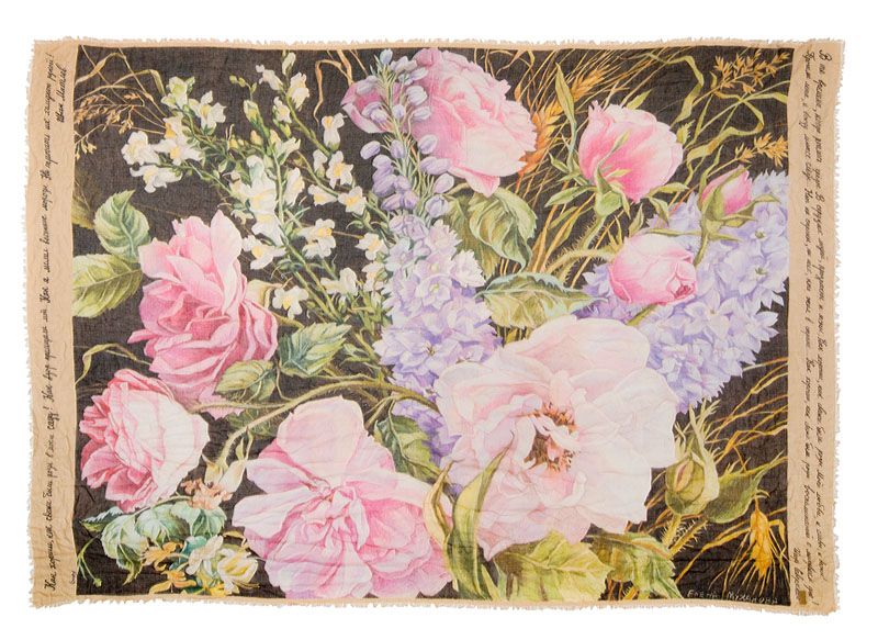 Классическая композиция платка «Букет» настолько изыскана и элегантна, что позволяет с полным основанием позволяем назвать этот аксессуар настоящим произведением искусства.