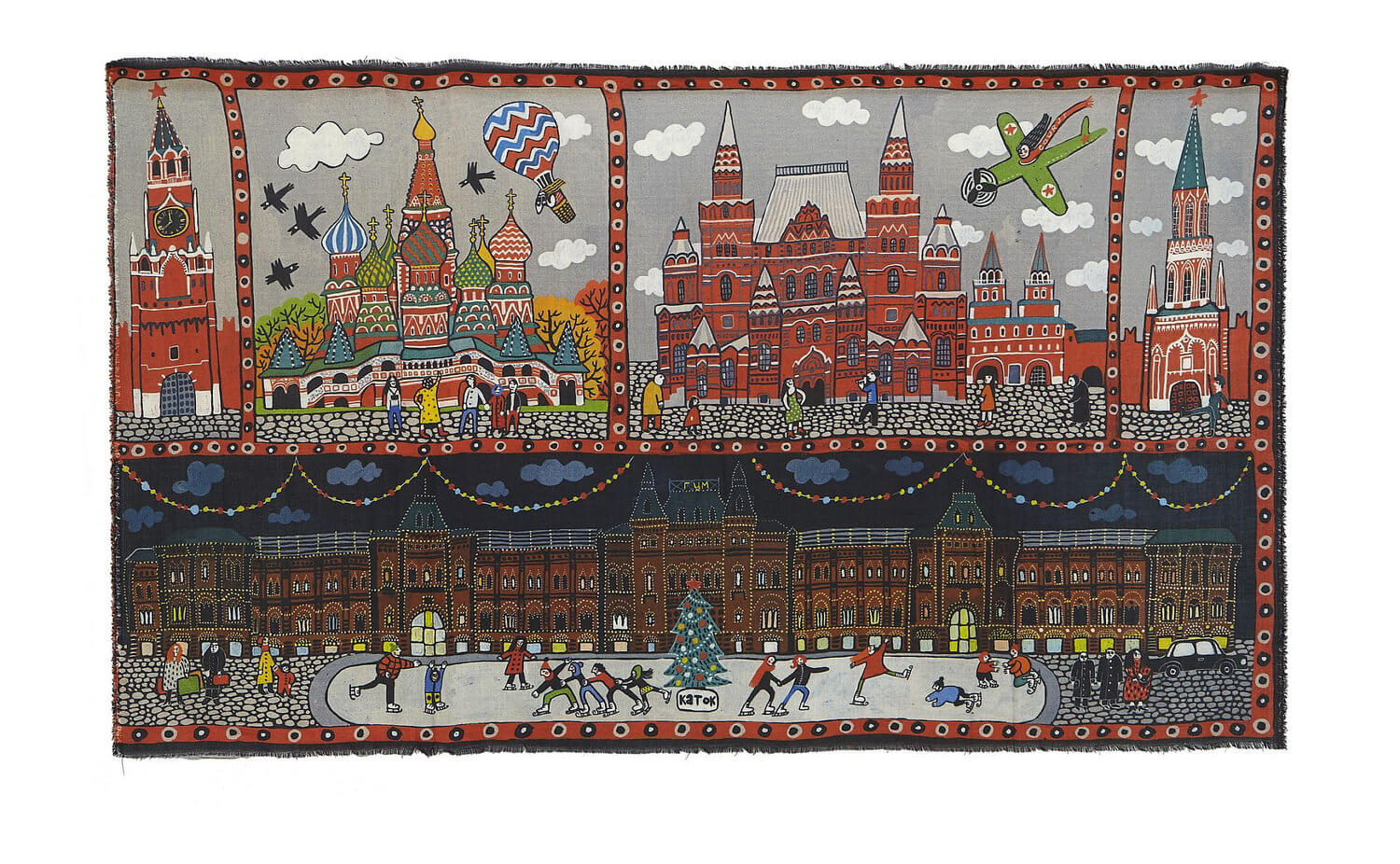 Известная практически всему миру Красная площадь выглядит на платке от Сони Уткиной не совсем обычно.