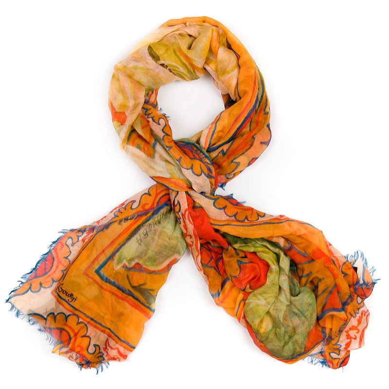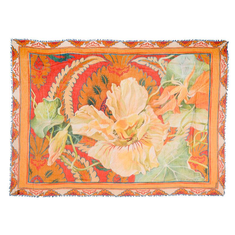 Живописная шаль из кашемира с модалем «Настурция» выглядит очень по-летнему благодаря яркой палитре, выбранной художником.