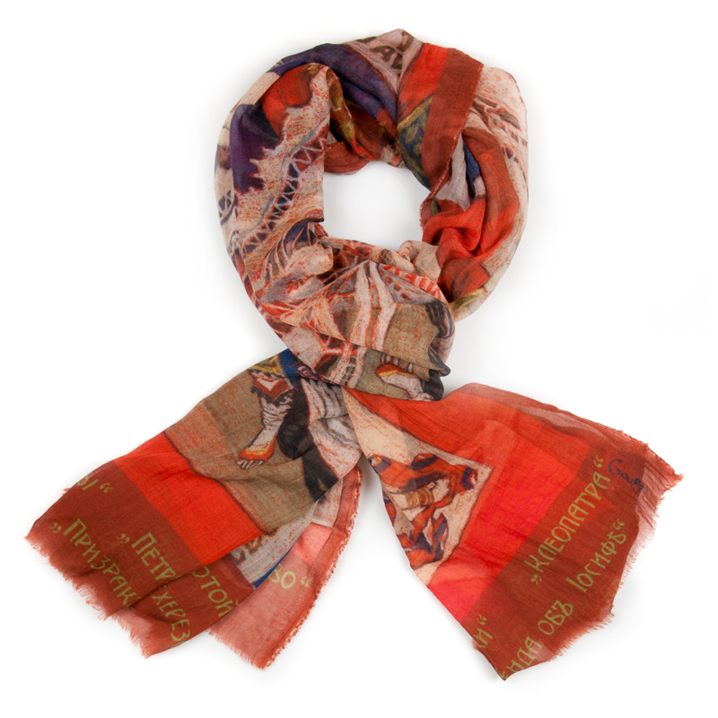 Эта шаль посвящена Дягилевским «Русским сезонам, пропагандировавшим не только балет, но и русское изобразительное искусство, что отразилось в великолепных декорациях и сценических костюмах участников постоянно действующей труппы Сергея Дягилева «Русский балет».