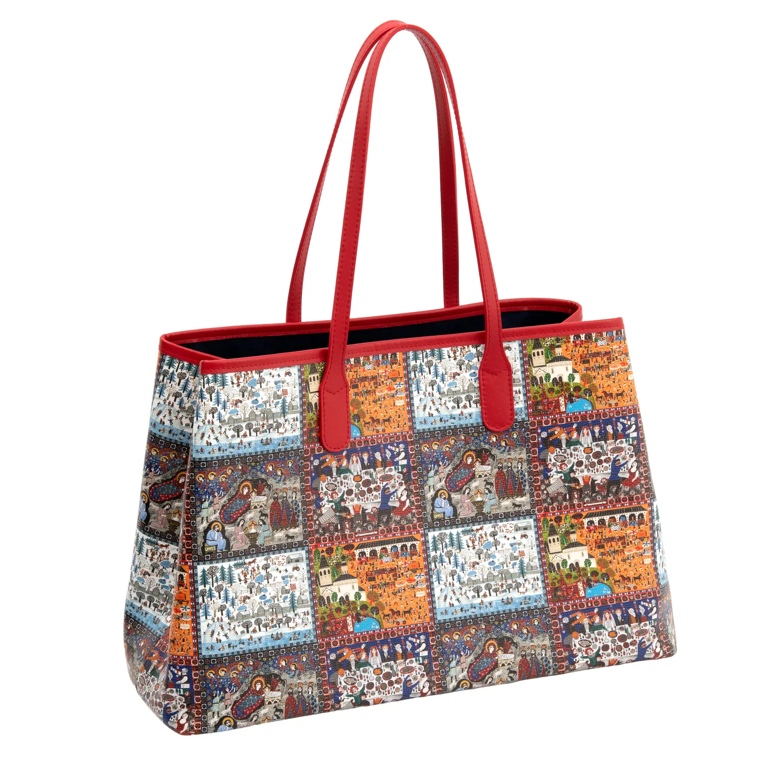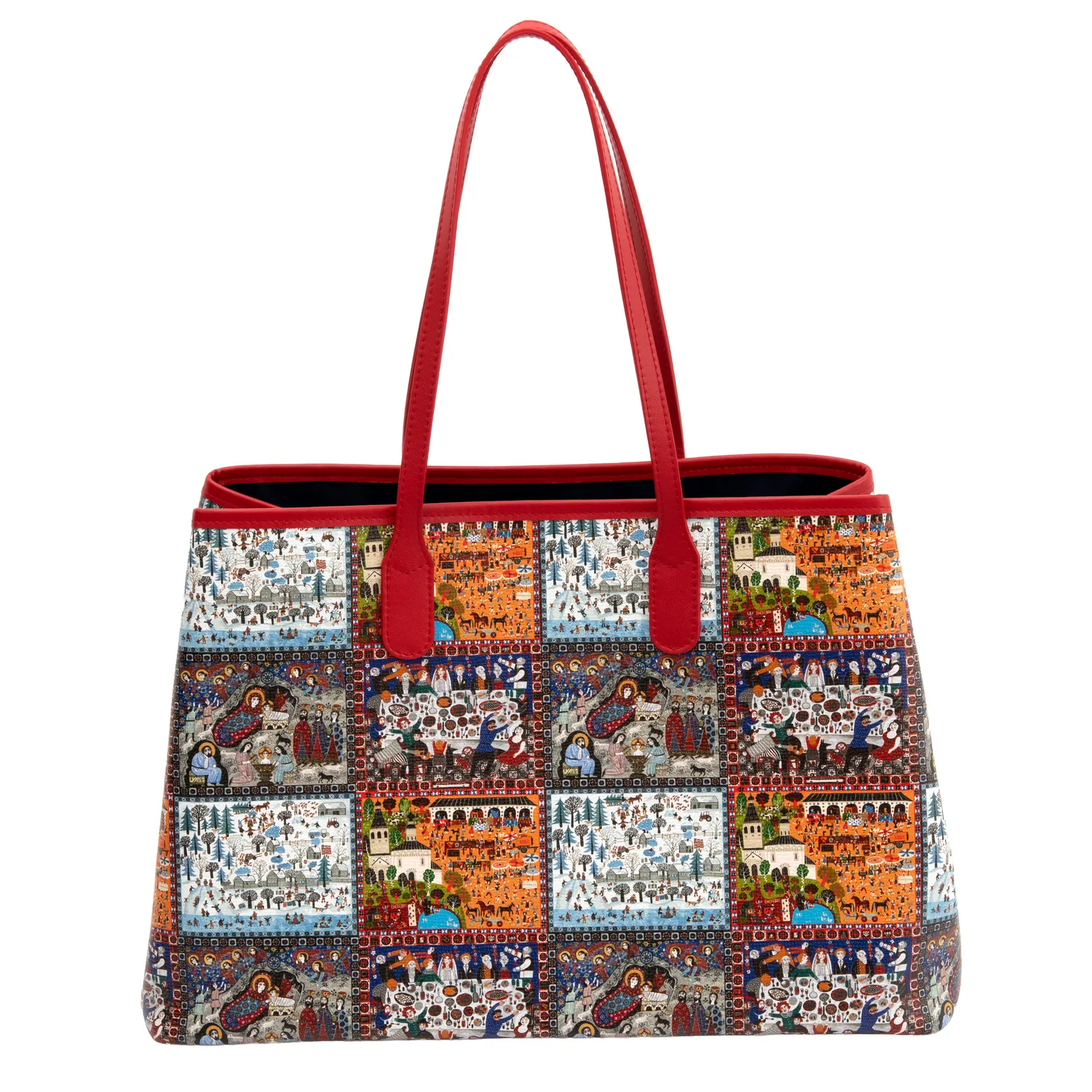 В основу коллекции женских кожаных сумок, клатчей и портмоне "Русская жизнь" положены фольклорные принты и рисунки художницы Сони Уткиной.