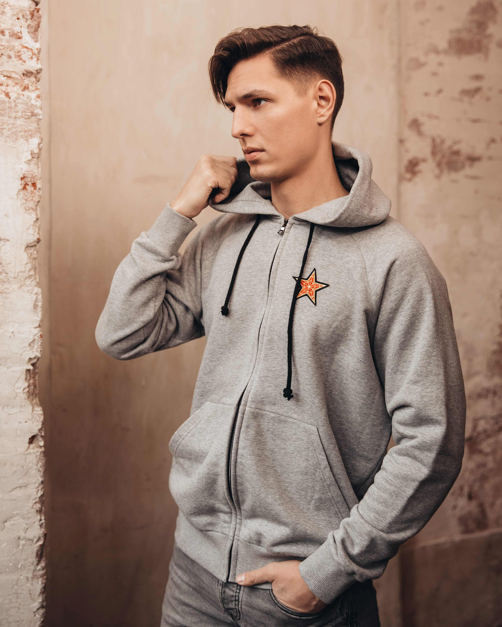 На груди вышита кремлёвская звезда.