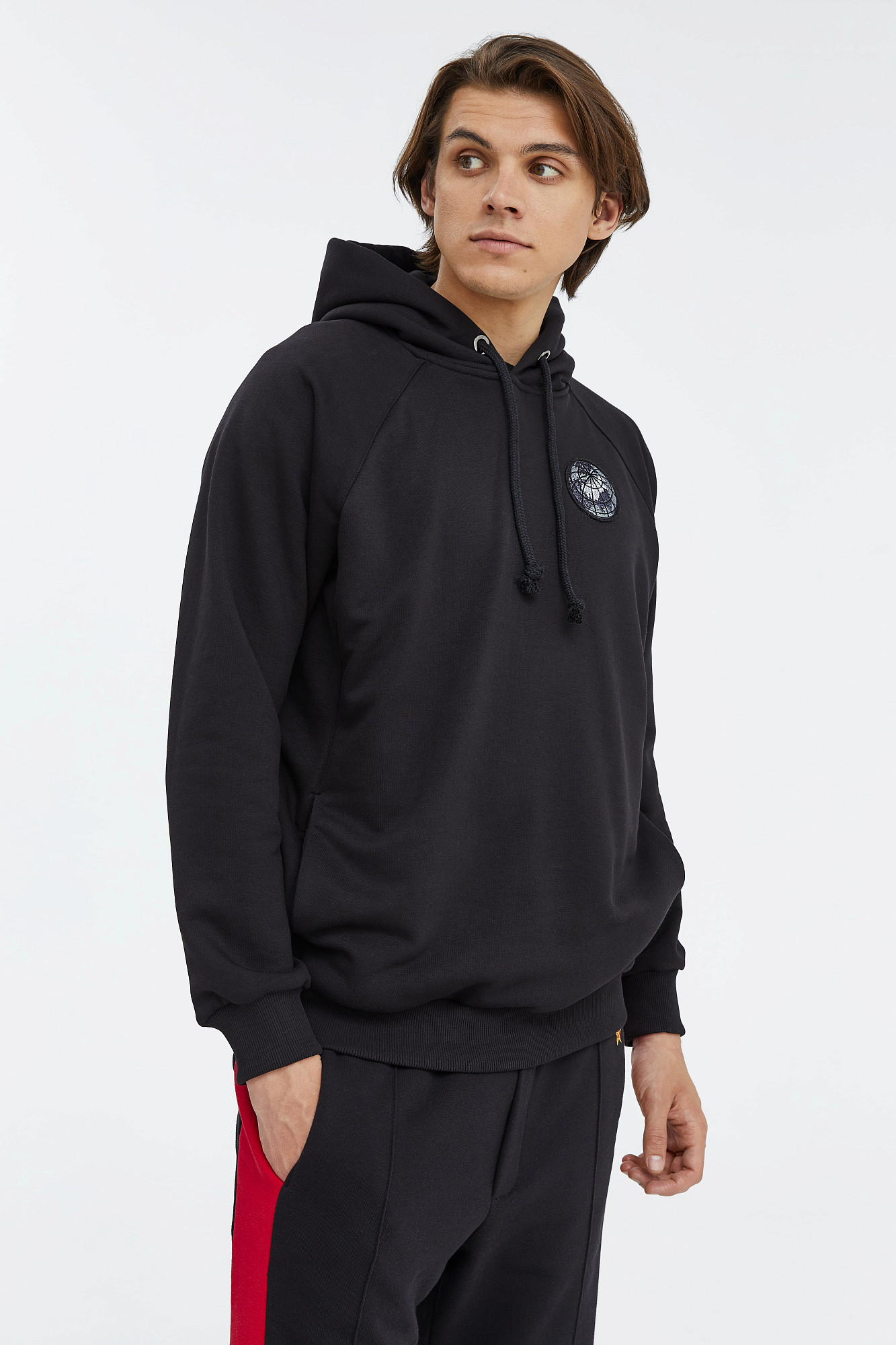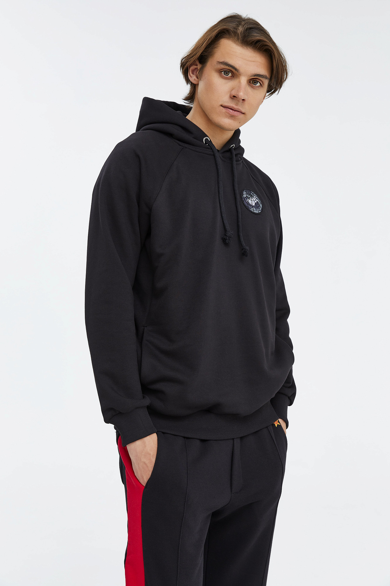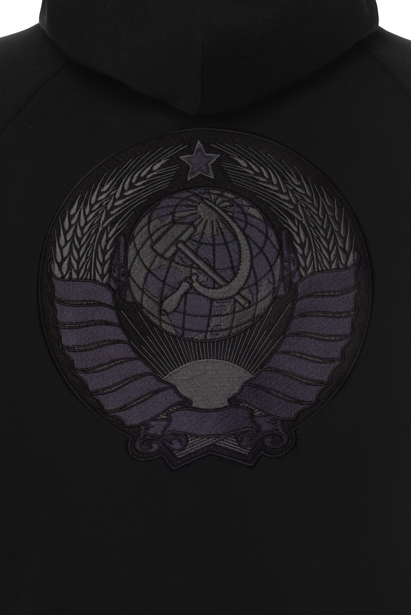 Толстовка с капюшоном на кулиске. Рукав реглан. Рельефная трикотажная резинка по низу рукавов и нижнему краю. Прорезные боковые карманы. Герб союза: Своего рода пару толстовке с гербом России составляет толстовка с гербом СССР. На её спинке вышит поздний вариант символики, принятый в 1956 году. Тогда Карело-Финская ССР была преобразована в автономию РСФСР, поэтому лент на колосьях осталось 15 — по числу союзных республик.