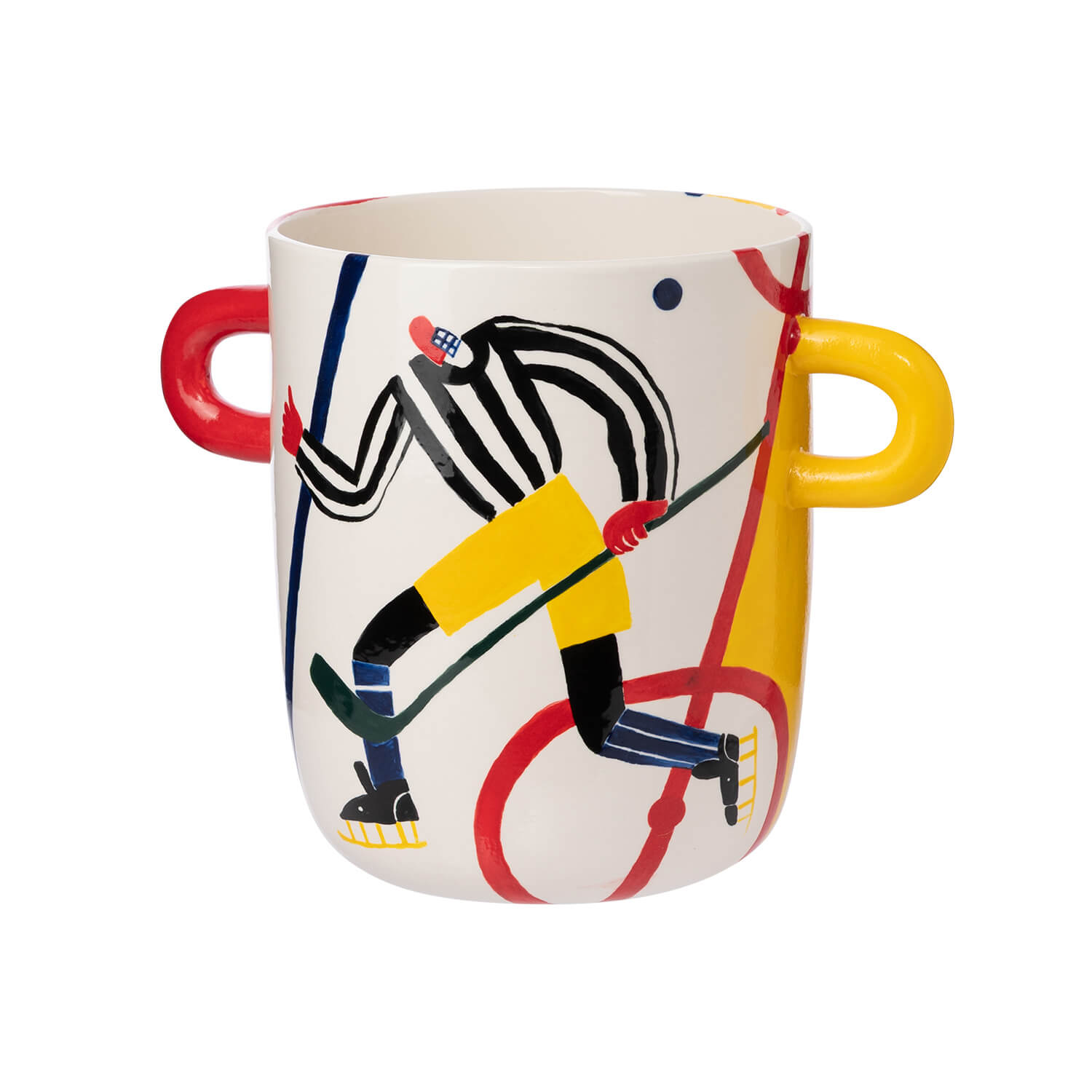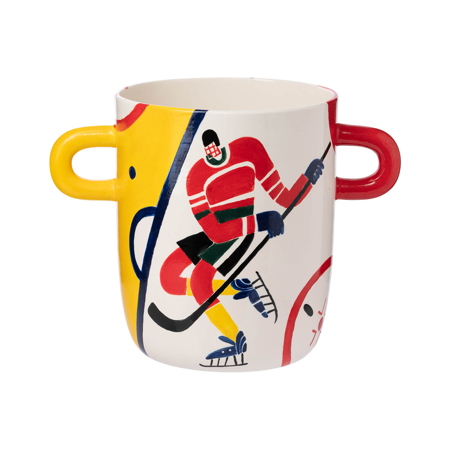 Коллекция «Спорт и здоровье» вдохновлена наследием советской графики — яркими плакатами, марками и открытками, посвященными спорту и физической культуре. Сцены, изображенные на керамике, перекликаются с характерными для того времени графическими элементами: динамичные фигуры спортсменов, яркие цвета и четкие линии, подчеркивающие движение и силу. Каждая деталь напоминает о кадрах из плакатов, призывающих к новым спортивным рекордам и здоровому образу жизни.