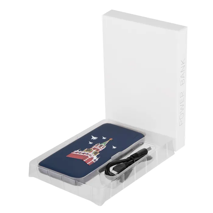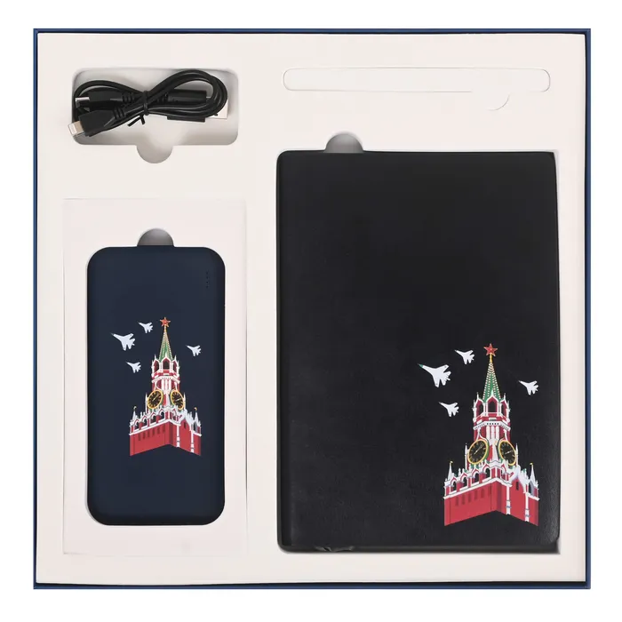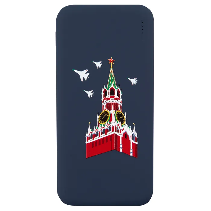 Матовая поверхность классического темно-синего цвета делает возможным разместить яркий рисунок "Башни Кремля", повторяющий культовый платок бренда Gourji.