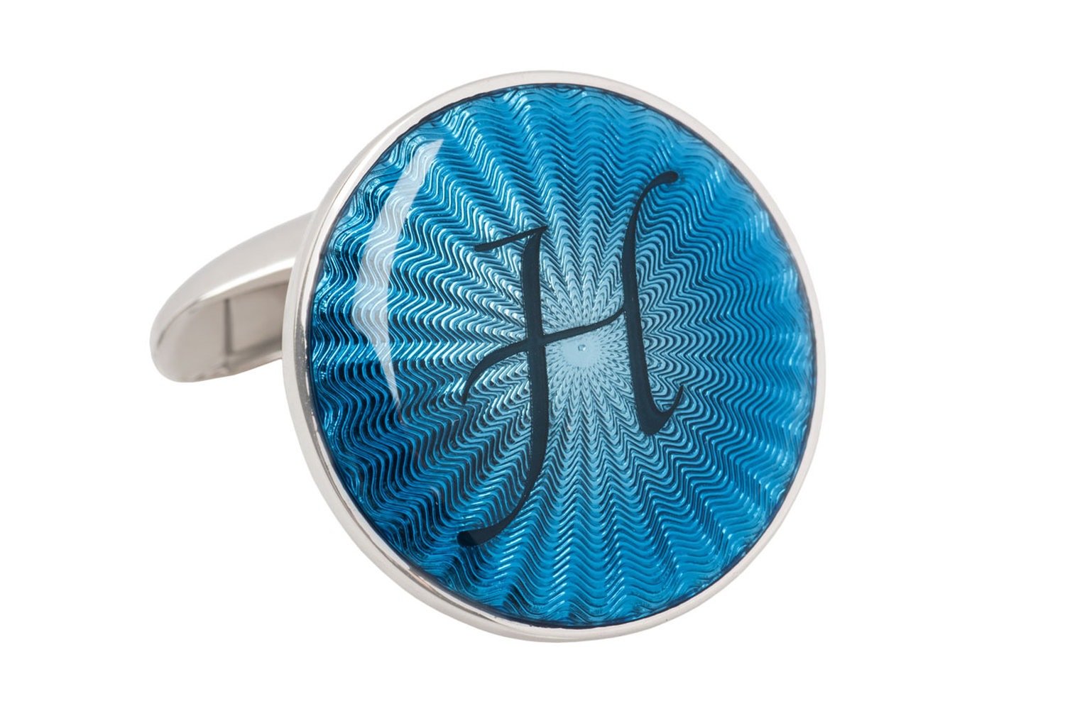 В коллекции Gourji «Безусловные знаки» появилась подходящая модель: в центре круглой серебряной запонки на голубой эмали написана одна из букв русского алфавита.