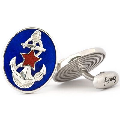 Запонки выполнены в серебре с эмалью и украшены серебряным якорем.
