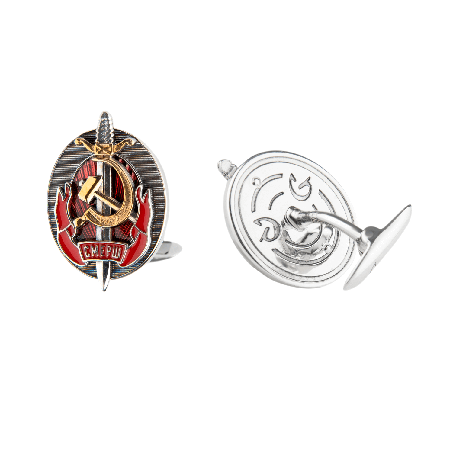 Новые запонки «СМЕРШ» из позолоченного серебра 925 пробы с эмалевым декором — это дань уважения ответственности, чести, профессиональному долгу перед страной и народом, которые были основой работы советской контрразведки.