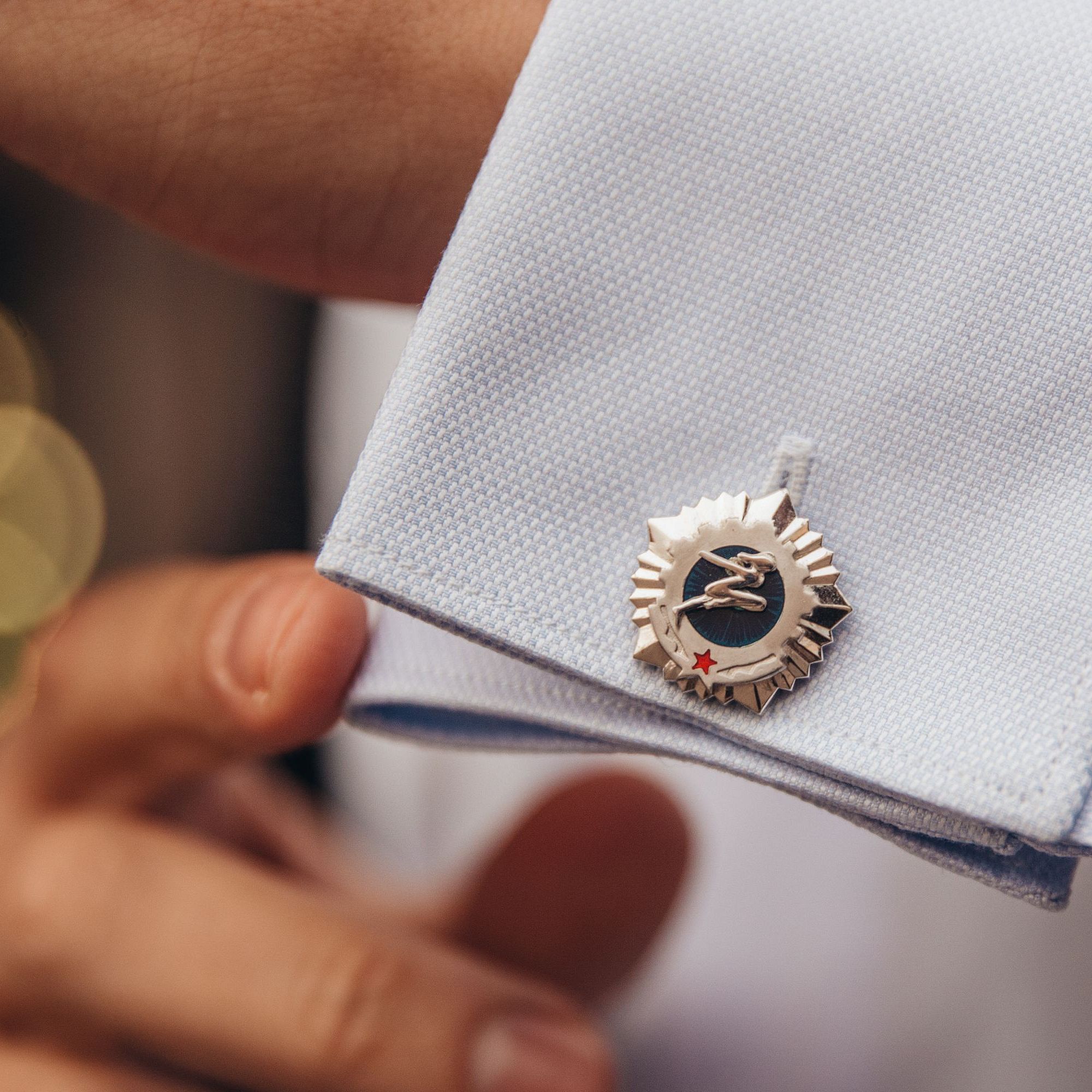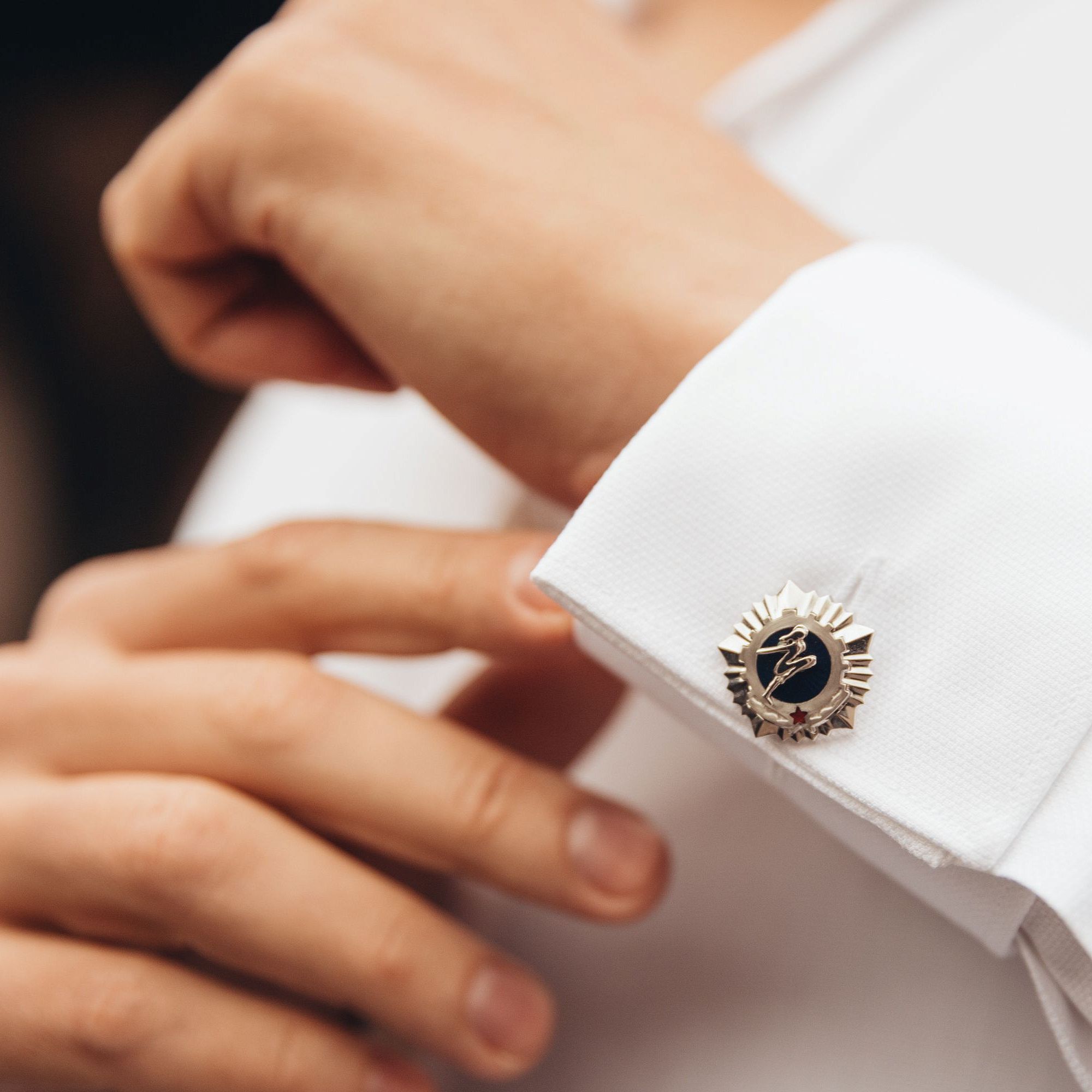 Эта серия значков и легла в основу модели запонок ГТО 1972. Запонки выполнены в белом золоте с эмалью.